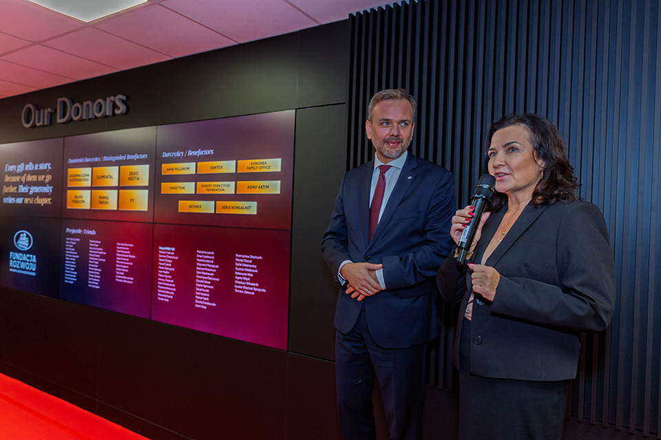 The unveiling ceremony was accompanied by expressions of gratitude from Prof. Grzegorz Mazurek, Rector of Kozminski University, and Dr. Sylwia Hałas-Dej, President of the Kozminski University Development Foundation, who together officially revealed the Donor Wall.